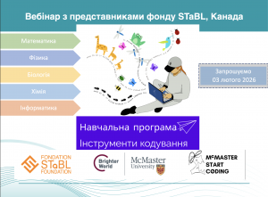 Шановні колеги! Запрошуємо Вас відвідати 03 лютого 2026 року о 14:30 Вебінар на тему: “Цифрова платформа для досліджень у STEM-дисциплінах: алгебраїчне мислення“.Спікер: директор фонду STaBL Foundation (Канада), Крістофер Ананд, доцент кафедри інформатики та програмного забезпечення McMaster University, доцент McMaster School of Biomedical Engineering Explained